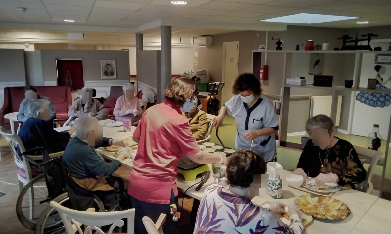 Aujourd'hui, c'est la chandeleur. A cette occasion, les résidents du Pasa (Pôle d'Activités de Soins Adaptés) se sont retrouvés afin de réaliser des crêpes. Cette animation a permis de retrouver ou de restaurer des gestes de la vie quotidienne. Les personnes âgées ont montré leur savoir faire et évoqué leurs souvenirs. Un moment de convivialité pour fêter cette journée.