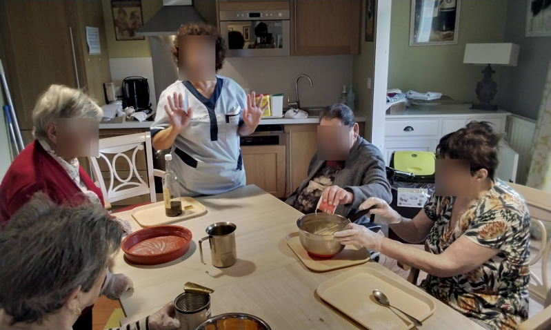 Accompagnés par une Assistance de Soins en Gérontologie, les participants ont mis la main à la pâte pour réaliser une délicieuse recette. Entre la préparation des ingrédients, le mélange de la pâte et les échanges autour des astuces de cuisine, les résidents ont pris plaisir à contribuer à chaque étape. Certains ont partagé leurs souvenirs de cuisine familiale, rappelant les gâteaux préparés autrefois pour leurs enfants ou petits-enfants.