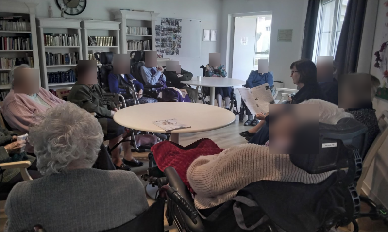 Ainsi, les résidents se retrouvent autour d’un moment de lecture partagée, animé par l’animatrice.