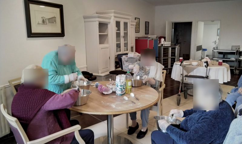 Les résidents participent selon leurs envies et leurs capacités : certains mélangent les ingrédients, d’autres lisent la recette ou pèsent les ingrédients. Chacun trouve sa place dans une ambiance chaleureuse, rythmée par les échanges, les rires et parfois même quelques anecdotes du passé.