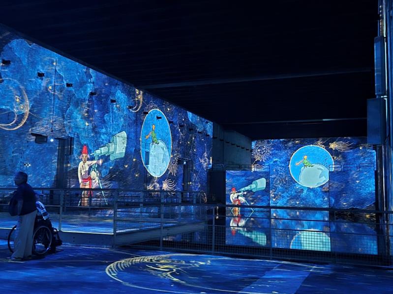 Au fil de la visite, nous avons été transportés dans les différentes étapes du récit : du désert mystérieux à l’astéroïde B612, en passant par les rencontres marquantes avec le renard ou le serpent. Les projections, accompagnées d’une musique envoûtante, créent une ambiance à la fois apaisante et émouvante.