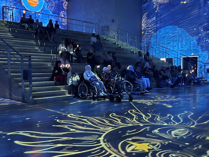 Située au cœur de la base sous-marine de Bordeaux, la visite des Bassins des Lumières offre une expérience hors du commun, particulièrement marquante pour notre groupe de neuf personnes âgées, ce mercredi 22 avril 2026. Dans ce lieu chargé d’histoire, transformé en centre d’art numérique, nous avons découvert une exposition immersive consacrée à Le Petit Prince, œuvre emblématique d’Antoine de Saint-Exupéry.