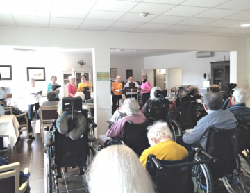 Dès notre arrivée, l’atmosphère nous a immédiatement plongés dans un univers singulier. Les immenses murs de béton de la base sous-marine servent d’écrin à des projections monumentales où images, lumières et musique se mêlent harmonieusement. Les résidents de la Chenaie ont été un peu surpris de l’obscurité et du défilé coloré de cette œuvre.